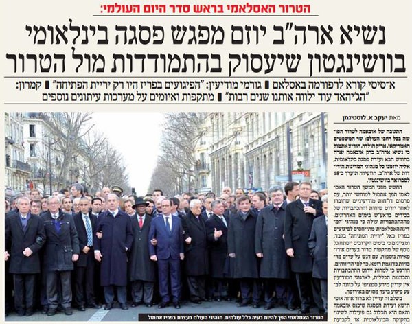 Angela Merkel, Ewa Kopacz, Anne Hidalgo e Federica Mogherini foram deliberadamente retiradas da fotografia publicada pelo diário israelita